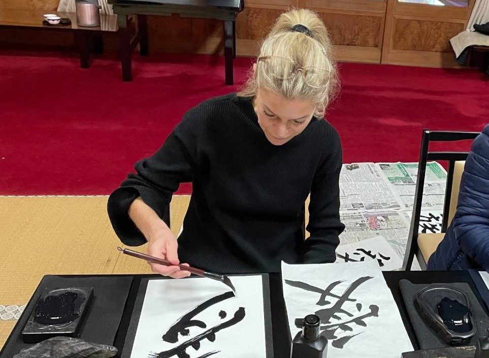 As you dip your brush into pitch-black ink and let it glide across traditional washi paper, the difficulty of the process demands your full concentration—whether you intend it or not.
